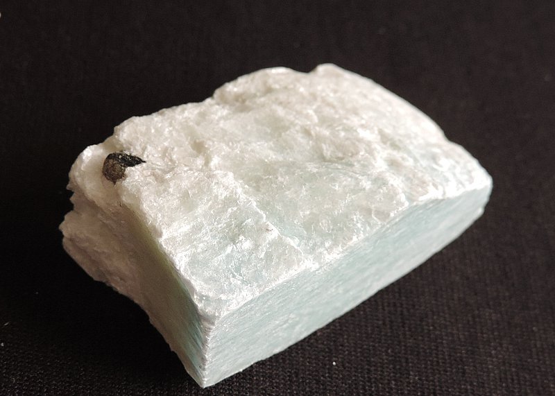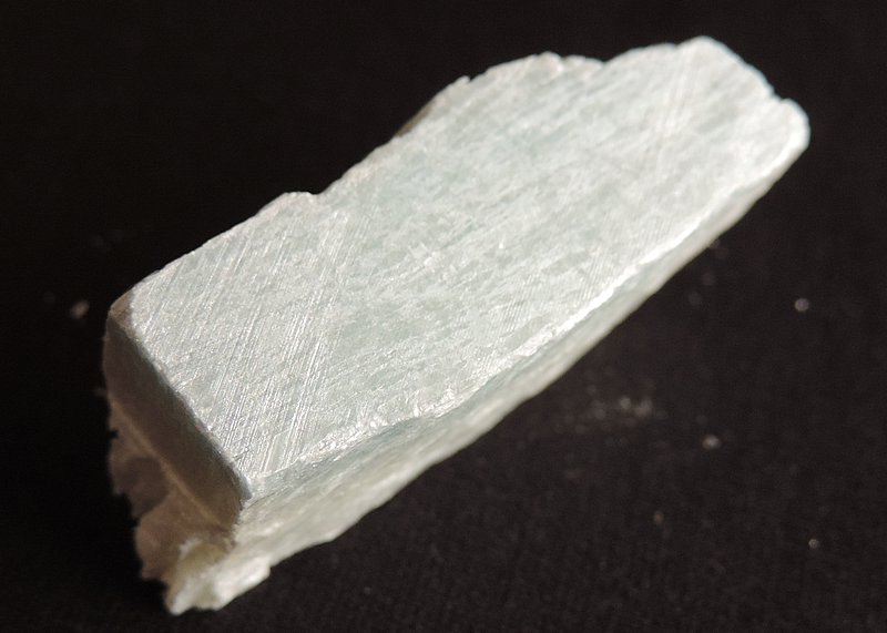 Цвет от белого до голубого и голубовато-синего, голубой, синий (различной интенсивности), иногда зелёный, серый. Полупрозрачен или просвечивает в краях, в тонких пластинках до прозрачного. Блеск стеклянный, на плоскостях спайности иногда перламутровый.