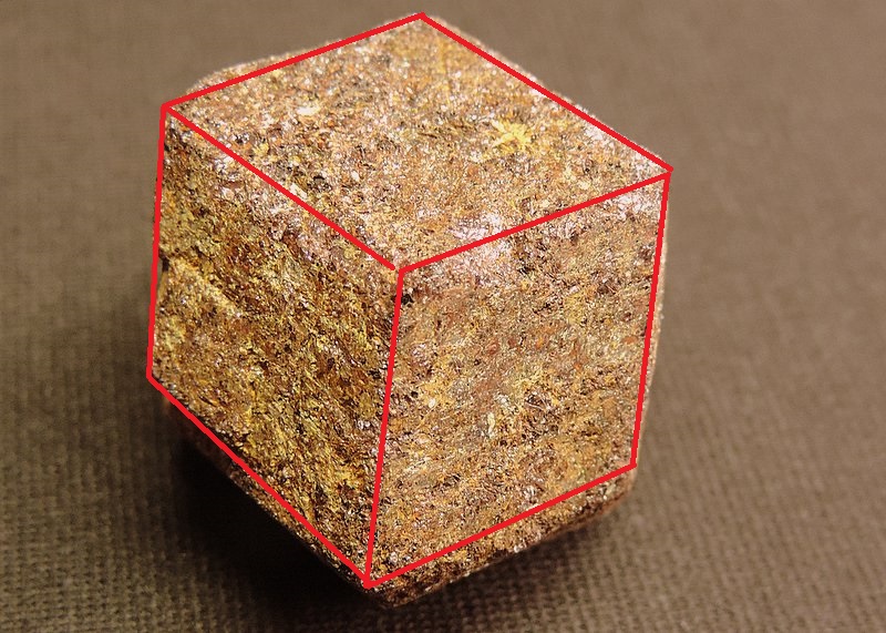 Блестящий кубик в массиве Талька — это кристалл Пирита