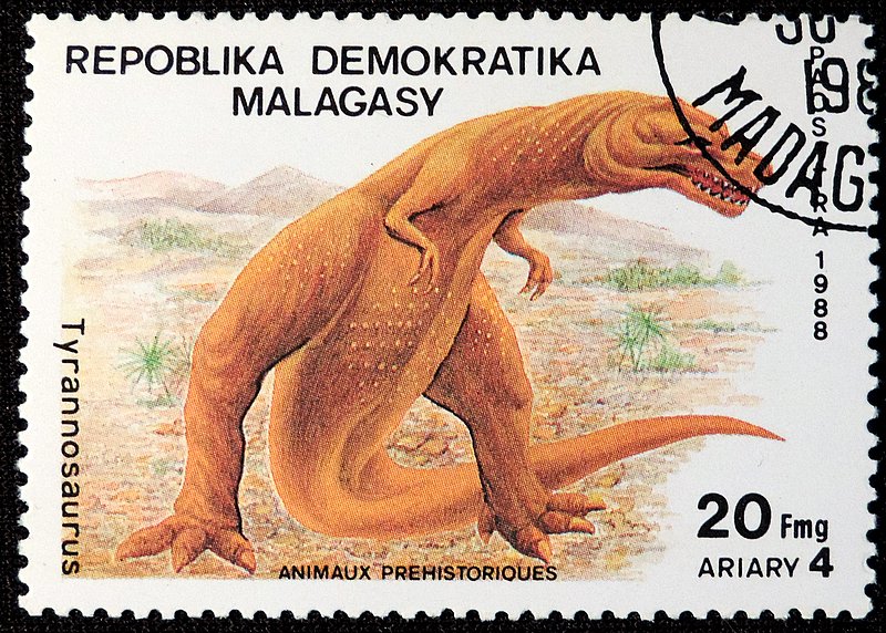 Тиранноза́вр (лат. Tyrannosaurus — «ящер-тиран», от др.-греч. τύραννος [tyrannos] — «тиран» и σαῦρος [sauros] — «ящер, ящерица». Тираннозавр был двуногим хищником с массивным черепом, который уравновешивался длинным, тяжёлым и жёстким хвостом. По сравнению с большими и мощными задними конечностями этого ящера его передние лапы были совсем небольшими, но необыкновенно могучими для своего размера, и имели два когтистых пальца. Является крупнейшим видом своего семейства, одним из самых больших представителей тероподов и одним из самых крупных наземных хищников за всю историю Земли. Один из крупнейших образцов тираннозавра по имени Сью при жизни достигала около 12,3—12,8 метра, высоту до бедра — 3,6 метра, а масса этой особи по оценкам экспертов при жизни достигала примерно 8,4—9,5 тонн.