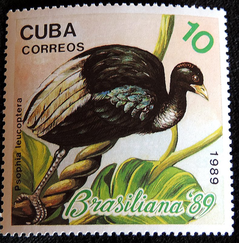 Белокрылый трубач (лат. Psophia leucoptera) — вид птиц из семейства трубачей. Вид распространён в северной части Южной Америки. Встречается на западе Бразилии, востоке Перу и на севере Боливии. Обитает в дождевых лесах Амазонии. Белокрылый трубач достигает длины 45—52 см, самцы весят 1,28—1,44 кг, самки немного легче и весят от 1,18 до 1,32 1 кг. Общая окраска оперения чёрного цвета. Второстепенные маховые перья блестящего белого цвета, на сложенных крыльях образуют большое чисто белое пятно. Нижняя часть горла без зелёной переливчатости, а верхние кроющие перья крыльев переливаются фиолетовым, зелёным и бронзовым оттенками. Клюв бледно-серый с жёлтым основание, ноги серые. Белокрылый трубач питается в основном спелыми фруктами, доля которых составляет 90% сухого веса и 88% калорий от общего количества потребляемой пищи. В состав рациона входят также членистоногие, иногда кольчатые черви и мелкие позвоночные, такие как змеи.В случае угрозы птицы взлетают на ветви высоких деревьев или пытаются убежать от врага по земле. Ночь проводят в верхушках высоких деревьев. Сезон размножения продолжается с сентября по апрель. Образует кооперативно-полиандрические группы. Гнездо находится в выдолбленном отверстии в стволе дерева, в среднем на высоте 11 м над землей. В кладке 2—4 (обычно три) белых яйца размером 60-69 x 47-50 мм; инкубационный период составляет 23-29 дней. Молодые птицы имеют густое тёмное пуховое оперение для лучшей маскировки. Птенцы покидают гнездо на следующее утро после вылупления; первые 3 недели они полностью зависят от взрослых в плане получения пищи и частично зависят от взрослых в плане получения пищи примерно до трёхмесячного возраста. Продолжительность жизни составляет 10—15 лет.