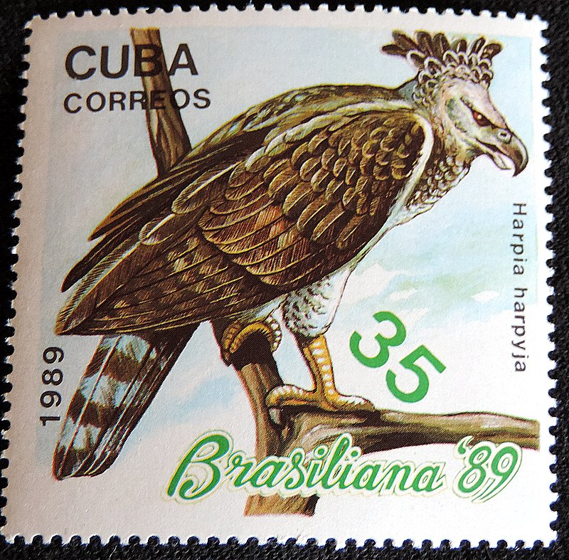 Южноамериканская гарпия (лат. Harpia harpyja) — вид хищных птиц из семейства ястребиных. Некоторыми авторами считается крупнейшим по весу орлом в мире. Длина тела этого орла от 90 до 110 см. Размах крыльев около 2 м, что меньше, чем у соразмерных по весу и росту орлов. Это объясняется тем, что этот орёл охотится в густом лесу, где при атаке на добычу приходится лавировать между деревьями и густой листвой. В этом плане гарпии похожи на ястребов, только значительно крупнее. Самка весит 6–9 кг, более мелкий самец 4–4,8 кг. У гарпии оперение на спине тёмно-серого цвета. Светло-серая голова с большими тёмными глазами и сравнительно некрупным, но мощным чёрным клювом украшена широкими тёмными перьями. В момент возбуждения гарпия приподнимает их почти вертикально на голове наподобие «рожек». У молодых птиц хохол более светлый. Брюхо белое, на оперенных лапах мелкие тёмные полоски. На шее тёмный широкий ошейник. По длинному хвосту идут широкие поперечные полосы серого цвета. Лапы чрезвычайно большие и мощные, способные выдержать большую массу, пальцы вооружены длинными чёрными когтями, длиной до 10 см. Этот крупный орёл обитает на равнине в тропических лесах Центральной и Южной Америки, от Мексики до Аргентины. Гарпия — это очень крупная и сильная хищная птица, гнездящаяся и охотящаяся в тропических и экваториальных лесах. По образу жизни похожа на ястребов, так как живёт в лесах. Основной пищей гарпии являются ленивцы, мелкие обезьяны, вроде капуцинов, и другие млекопитающие, второстепенной — рептилии и крупные птицы. В частности, в их рацион входят агути, опоссумы, броненосцы, муравьеды, змеи диаметром до 5 см, ящерицы; среди птиц — попугаи-ара, туканы и другие. Гарпии охотятся и на цепкохвостых дикобразов, у которых почти нет врагов среди хищников. Из деревень гарпии изредка таскают кур, но из-за чрезвычайной редкости самой птицы такие случаи единичны. Охотничья территория пары птиц составляет около 30 км2.