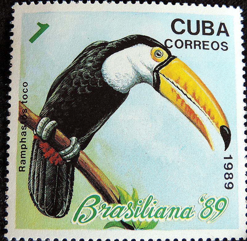 Большой тукан, или тукан токо (лат. Ramphastos toco) — вид птиц из семейства тукановых. Крупнейший и наиболее известный представитель семейства. Распространён в большой части Южной Америки. Тело большого тукана черное, воротник, грудь и верхняя часть хвоста белые, нижняя часть хвоста красная. Вокруг глаза тонкая голубая кожа, она окружена оранжевой, более грубой. У большого тукана очень большой желто-оранжевый клюв с красной частью сверху и черным пятном на конце. Длина клюва 15,8—23 см. Он выглядит тяжелым, но, как и у других туканов, он полый. Язык у этого вида почти такой же длинный, как и клюв, и очень плоский. Длина большого тукана 55—65 см. Вес самцов от 640 до 860 г, самок от 500 до 700 г, таким образом он является самым большим представителем семейства туканов и самым большим дятлообразным. Самцы большого тукана больше самок, в остальном по внешнему виду они не отличаются. Длинный клюв используется большими туканами для добычи пищи в труднодоступных местах, а также для очищения кожуры фруктов и отпугивания хищников.т Гнездо обычно размещается на высоком дереве (20—30 метров над землёй), состоит из дупла, хотя бы часть которого делается самими птицами-родителями. Самка откладывает обычно от 2 до 4 яиц через несколько дней после спаривания. Яйца насиживаются как самкой, так и самцом, птенцы вылупляются после 17—18 дней. Птенцов кормят фруктами и насекомыми. Большие туканы питаются фруктами (маракуйей и фигами), срывая их с деревьев. Также употребляют в пищу насекомых, лягушек, рептилий, яйца и птенцов других птиц.