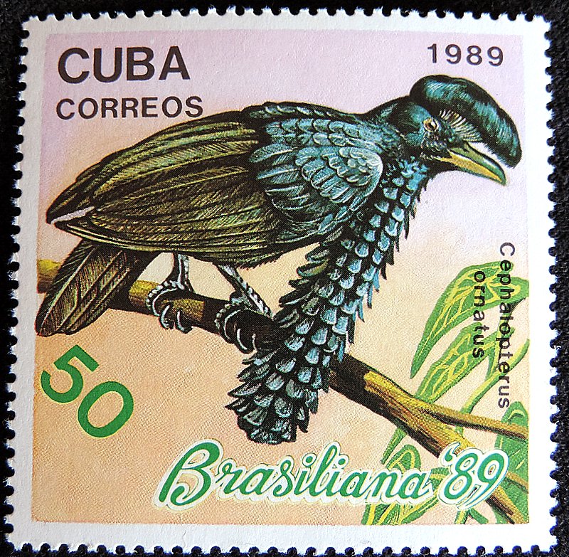 Амазонская зонтичная птица, или хохлатый головач (лат. Cephalopterus ornatus) — вид птиц семейства котинговых. Намного больше, чем самки, самцы амазонской зонтичной птицы, вероятно, самые крупные воробьиные в Южной Америке. Самцы амазонской зонтичной птицы набирают массу до 480—571 г и вырастают в длину до 48—55 см. Длина тела самки составляет в среднем 41—44 см, масса — до 380 г. Как и другие зонтичные птицы, амазонская зонтичная птица почти полностью чёрная, имеет заметный крест в верхней части головы и вздутые серёжки на шее, которые служат для усиления их громкой, взрывной вокализации. Эта птица имеет светлые глаза, в то время как у большинства зонтичных птиц они чёрные. Волнообразный способ полёта этого вида практически такой же, как у дятла, однако отсутствие белого оперения у зонтичных птиц отличает их от крупных дятлов, сосуществующих с ними. Амазонская зонтичная птица, как правило, заметна в полёте только тогда, когда она пролетает над открытыми пространствами, такими, как реки. Она обычно смело перепрыгивает с ветки на ветку, находясь на деревьях.