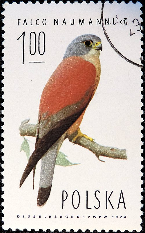 Степная пустельга (Самец) (лат. Falco naumanni) — мелкая хищная птица семейства соколиных, близкая родственница обыкновенной пустельги. Гнездится в Северо-Западной Африке и полосе степей и полупустынь Евразии от Пиренейского полуострова к востоку до Монголии и северного Китая. Зимует в Африке южнее Сахары. Стайная птица, редко встречаемая одиночными парами. Это один из наиболее пострадавших от хозяйственной деятельности человека пернатых хищников. Птица исчезла из многих районов, где обитала ранее, а в других стала редким видом. Наиболее вероятной причиной деградации называют обширное использование пестицидов и другие усовершенствованные методы борьбы с вредителями в сельском хозяйстве, уничтожающие насекомых — основу питания этих соколов. Мелкий, с сизого голубя сокол изящного телосложения, с узкими крыльями. Длина 29—33 см, размах крыльев 58—75 см, вес самцов 90—180 г, вес самок 135—210 г. Основу рациона составляют насекомые, преимущественно прямокрылые: сверчки, кузнечики, саранча, медведки, стрекозы, различные виды жуков. Иногда поедает многоножек и скорпионов. Весной также употребляет в пищу мелких грызунов. В поисках пищи летает низко над землёй, зависая на одном месте при порывах ветра; при обнаружении добычи бросается вниз и хватает её на поверхности земли. Летающих насекомых ловит также в воздухе, в пике или на взлёте.