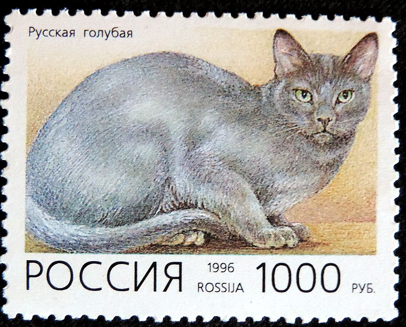 Русская голубая кошка, обычно называемая просто Русская голубая , — порода кошек с окрасом от светлого мерцающего серебристого до более темного, сланцево-серого. Короткая, густая шерсть, которая выделяется на теле, является отличительной чертой породы уже более века. Русская голубая — это естественная порода , которая, возможно, возникла в порту Архангельск в России. Их также иногда называют архангельскими голубыми. Считается, что моряки привезли их с Архангельских островов в Великобританию и Северную Европу в 1860-х годах. Первое упоминание об архангельской кошке появляется в британской печати в 1862 году. Первое зарегистрированное появление одной из них на выставке было в 1872 году в Хрустальном дворце в Англии как архангельской кошки. Русские голубые кошки — это плюшевые короткошерстные, мерцающие бледно-голубо-серые кошки с изумрудно-зелеными или желтыми глазами.  Их обычно считают тихой породой, но всегда есть исключения. Обычно они сдержанны с незнакомцами, если только не воспитываются в активной семье. Многие русские голубые обучены делать трюки. Они также могут быть яростными охотниками, часто ловя грызунов, птиц, кроликов, мелких млекопитающих или рептилий. Русские голубые котята также очень умны. У них отличная память, они запоминают, где спрятаны любимые игрушки, и приводят к ним своих хозяев, когда те хотят поиграть. Они также обладают прекрасной способностью запоминать любимых посетителей и будут спешить, чтобы поприветствовать знакомых лиц, даже если между визитами прошло довольно много времени. Это кошки небольшого или среднего размера, средний вес которых составляет от 3,6 до 6,8 кг.