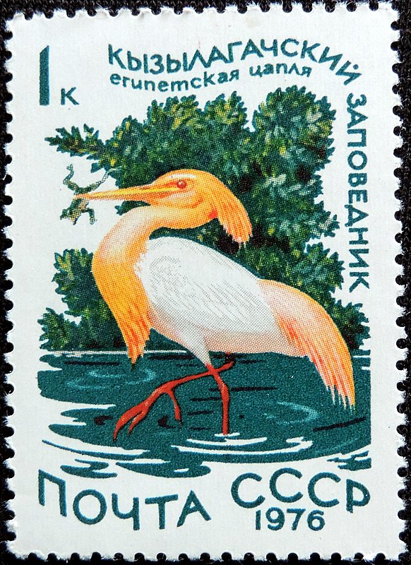 Восточная египетская цапля — Небольшая цапля, величиной примерно с ворону, длина 48–53 см, масса 300–500 грамм, размах крыльев 90–96 см. Окраска в основном белая. У птиц в брачном наряде на фоне белого оперения выделяются удлинённые рыжие перья на спине, макушке и на нижней части шеи. Клюв, ноги и глаза жёлтые (в разгар тока встречаются особенно яркие особи, у которых ноги и клюв ярко-розовые, почти красные). После сезона размножения рыжий цвет почти полностью исчезает, птица становится белой. Ноги темнеют, желтизна остаётся только на голени. Прародиной египетской цапли считаются центральные регионы Африки, расположенные южнее пустыни Сахара. Из африканских саванн она вместе с крупным рогатым скотом постепенно переместилась на северо-запад и северо-восток континента, а оттуда на острова Индийского океана, в Южную Европу и Юго-Восточную Азию. В Украине египетские цапли являются мигрантами и изредка наблюдаются на юге страны в нижнем течении Днепра. В России они в небольшом количестве гнездятся в низовьях Волги и Терека. Основная пищи египетской цапли – беспозвоночные, чаще всего кузнечики и двукрылые (личинки и взрослые мухи и слепни). Кроме того, они поедают стрекоз, водяных жуков, червей, пауков, медведок, моллюсков, в меньшей степени – лягушек и мелкую рыбу. В Африке египетские цапли обычно сопровождают стала буйволов, зебр, крупных антилоп, слонов, носорогов и бегемотов. Обычно цапли ходят или подлетывают около голов или ног пасущихся животных и ловят вспугнутых ими кузнечиков и других насекомых. Нередко можно увидеть египетских цапель, сидящих на спинах слонов или зебр и высматривающих оттуда добычу. В связи с этим ряд зоологов полагает, что цапли выклевывают клещей и насекомых-паразитов из шерсти животных, чем значительно облегчают им жизнь. Получается классический пример симбиоза (взаимной пользы для обоих участников). Населяет заросли деревьев на болотах, вблизи мелководий. Весной прилетает в конце марта — начале апреля. Гнездится в колониях (до 50 пар на одном дереве) совместно с другими представителями семейства цаплевых. Гнездо строит из тонких веточек на дереве, на высоте 3-10 метров от земли; или же восстанавливает старое. В строительстве или восстановлении гнезда принимают участие оба родителя. Кладка в 4-5 (очень редко до 9 яиц) происходит в конце апреля — мае. 21-24 дня насиживают оба родителя, также совместно они выкармливают птенцов, которые начинают летать в июле. Осенняя миграция происходит рано, возможно в августе-сентябре, точных данных не имеется.