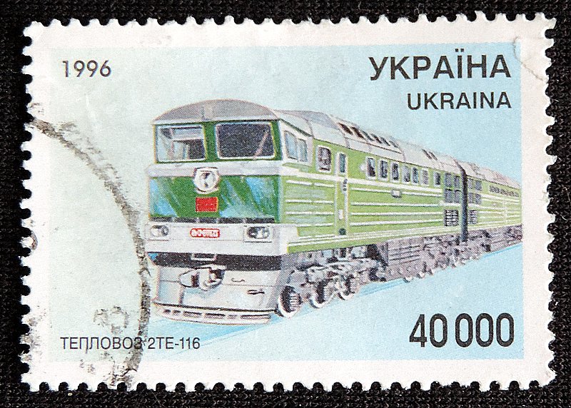 Надпись на марке — 2ТЭ116 (2-секционный тепловоз с электропередачей, тип 116) — серия магистральных двухсекционных грузовых тепловозов с электрической передачей, производившихся в СССР и на Украине, на Луганском тепловозостроительном заводе